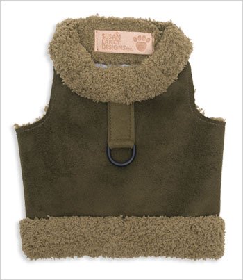Susan Lanci Designs has done it again! Introducing the Bowzer Harness Jacket, the perfect marriage of harness and warm jacket for the small dog in your life. Genuine Luxe Suede shell is lined with warm, color coordinated Chenille. Velcro closure at neck and chest provides easy, secure closure.